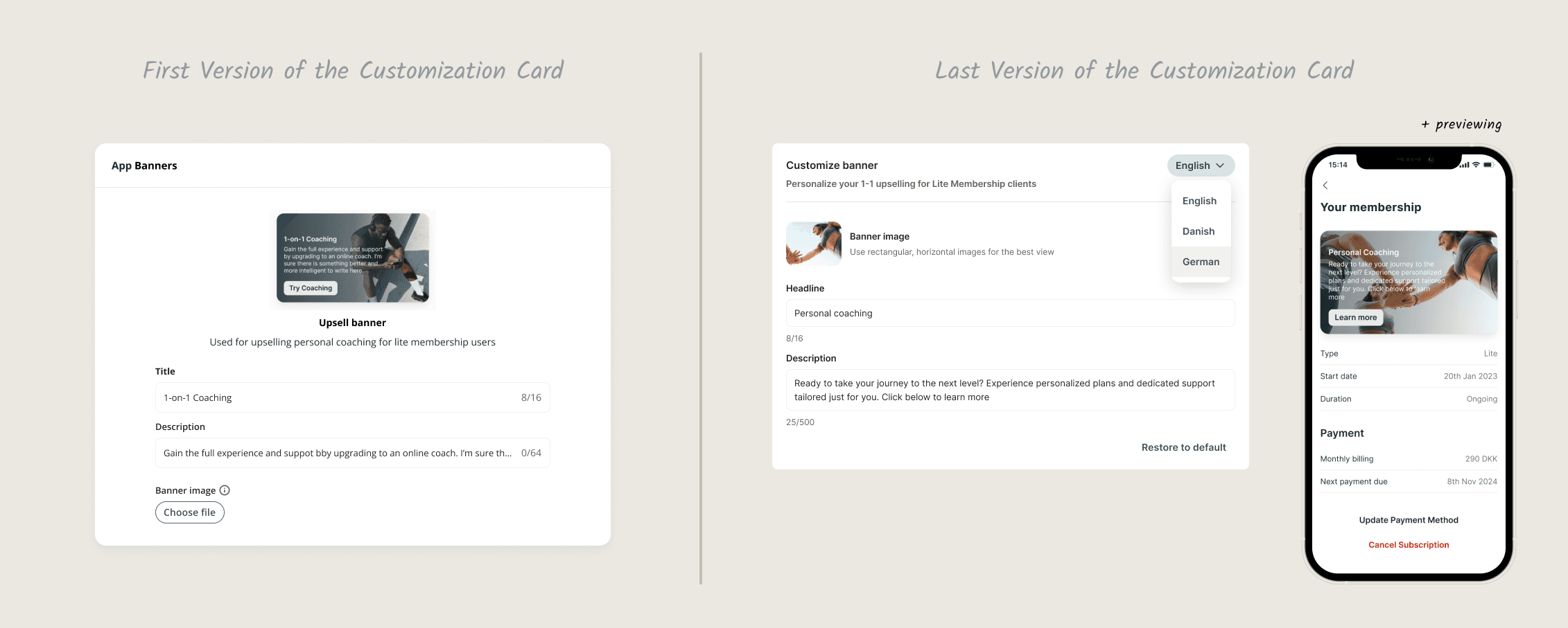 - Brand Customization - set of tools allowing coaches to add their visual identity across all customer touchpoints.