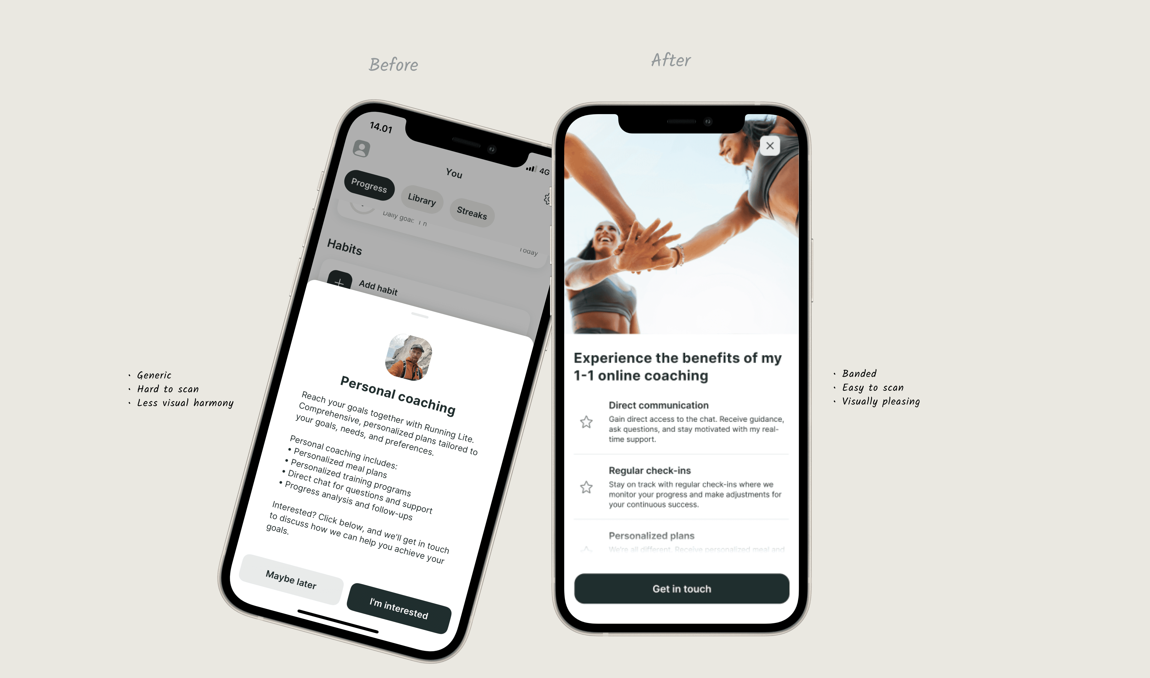 Coaches using the Lenus app felt that the experience was too generic and lacked their personal touch.